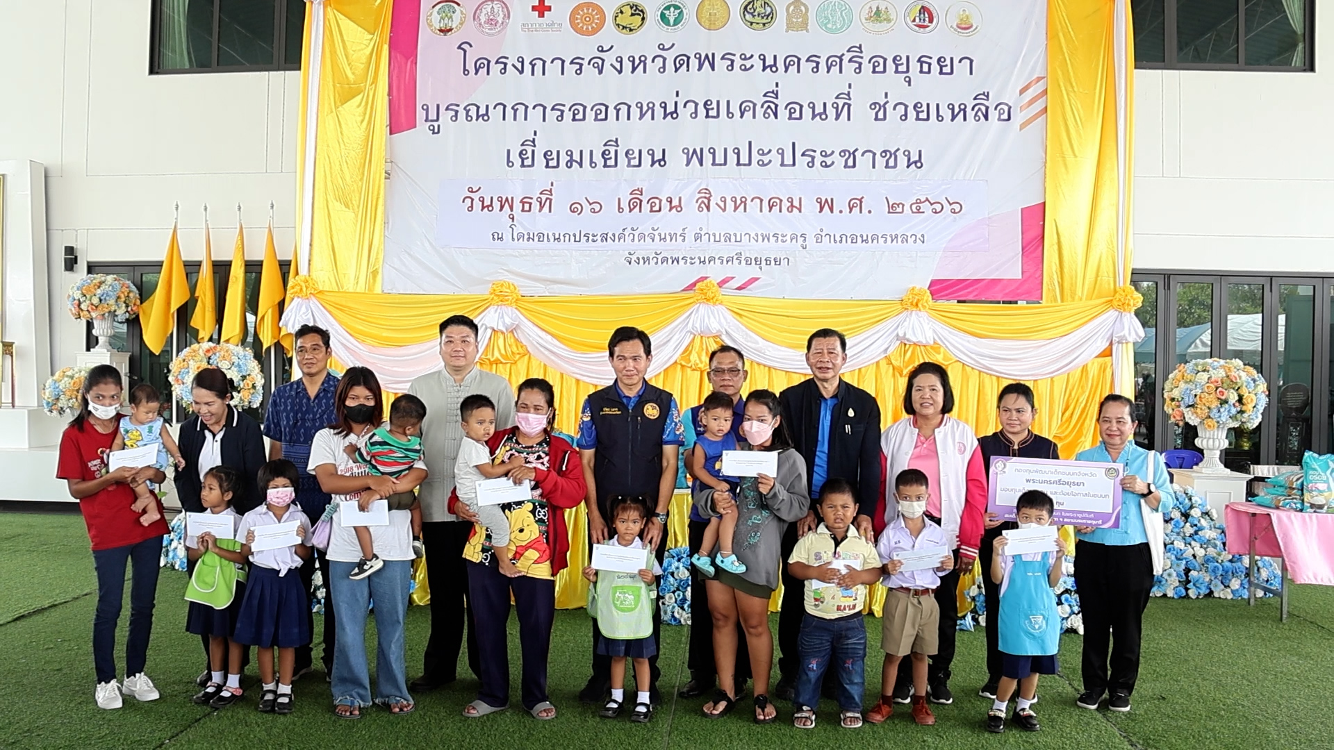 ? นายนิวัฒน์ รุ่งสาคร ผู้ว่าราชการจังหวัดพระนครศรีอยุธยา พร้อมด้วย นายประทีป การมิตรี นายไพรัตน์ เพชรยวน รองผู้ว่าราชการจังหวัดพระนครศรีอยุธยา นายศุภสิทธิ์ เอี่ยมเจริญ นายอำเภอนครหลวง หัวหน้าส่วนราชการ และประชาชน ร่วมกิจกรรมกว่า 250 คน บูรณาการร่วมกับส่วนราชการประจำจังหวัดและภายในพื้นที่อำเภอนครหลวง รวม 19 หน่วยงาน ร่วมออกหน่วยเคลื่อนที่ ช่วยเหลือ เยี่ยมเยียน พบปะประชาชน ภายใต้แนวคิด “คนอยุธยา..ไม่ทิ้งใครไว้ข้างหลัง”