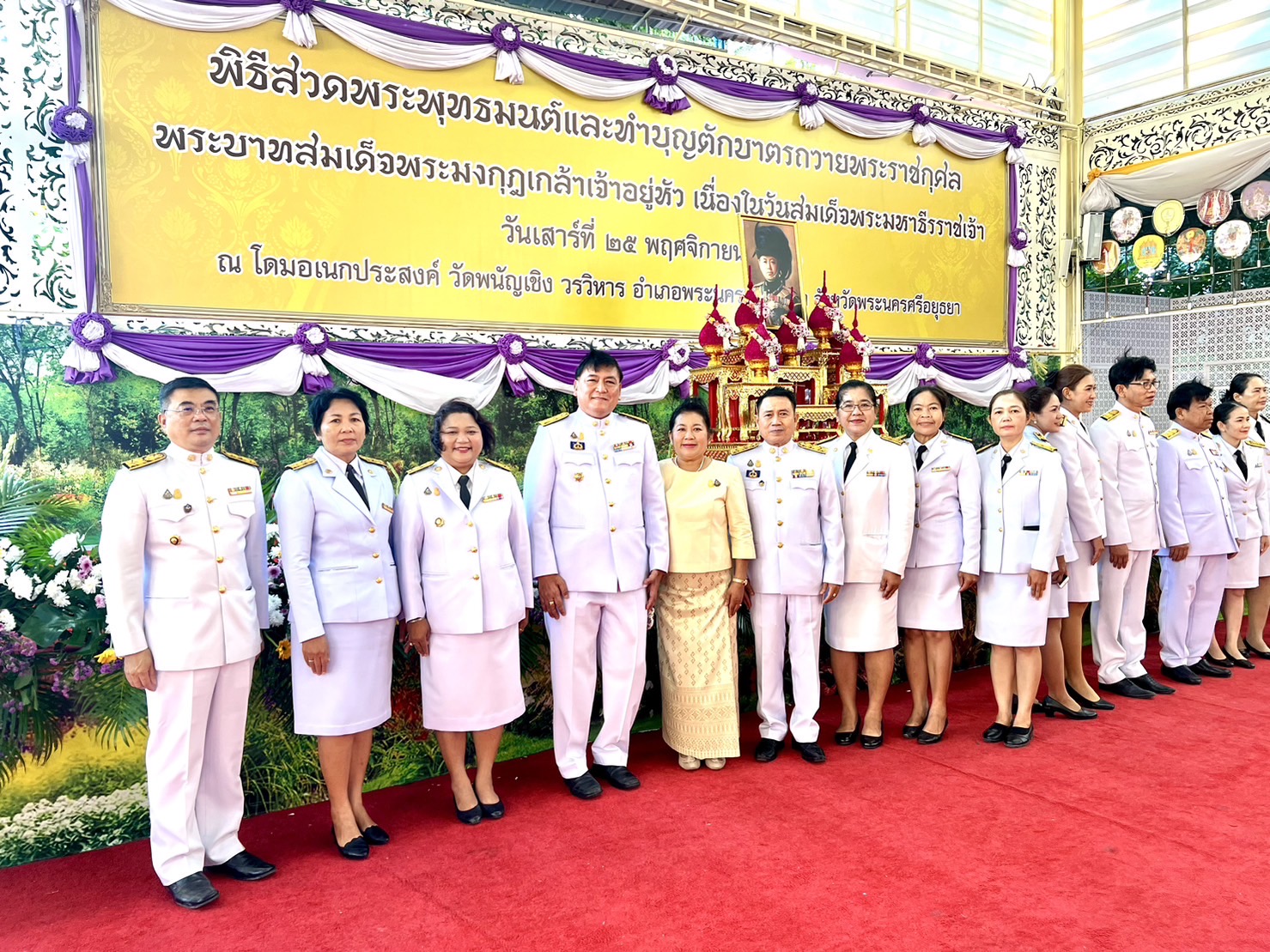 📝 นายนิวัฒน์ รุ่งสาคร ผู้ว่าราชการจังหวัดพระนครศรีอยุธยา พร้อมด้วย นางวัชราภรณ์ รุ่งสาคร นายกเหล่ากาชาดจังหวัดพระนครศรีอยุธยา นำส่วนราชการ หน่วยงานรัฐวิสาหกิจ องค์กรปกครองส่วนท้องถิ่น ภาคเอกชน ประชาชน นักเรียน นักศึกษา และหน่วยงานต่างๆ ร่วมกิจกรรมเนื่องในวันสมเด็จพระมหาธีรราชเจ้า ณ โดมอเนกประสงค์ วัดพนัญเชิง วรวิหาร อำเภอพระนครศรีอยุธยา จังหวัดพระนครศรีอยุธยาโดยมีการจัดกิจกรรม พิธีสวดพระพุทธมนต์และทำบุญตักบาตรถวายพระราชกุศล พระสงฆ์จำนวน 45 รูป