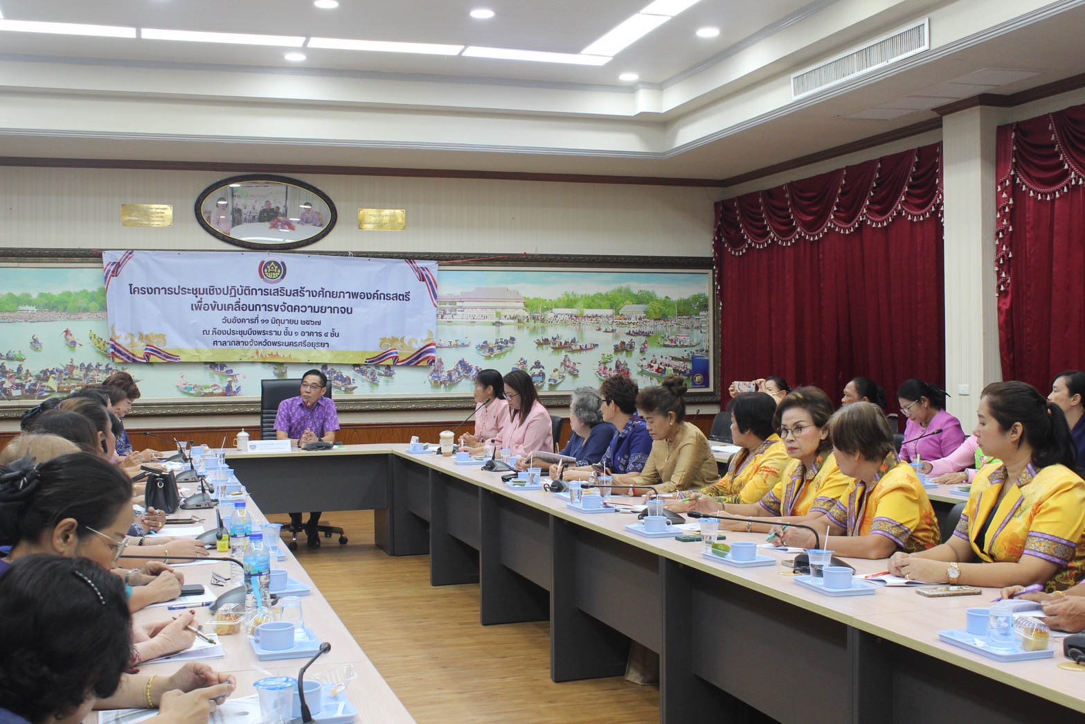 พช.กรุงเก่า จัดประชุมเชิงปฏิบัติการเสริมสร้างศักยภาพองค์กรสตรีเพื่อขับเคลื่อนการขจัดความยากจน