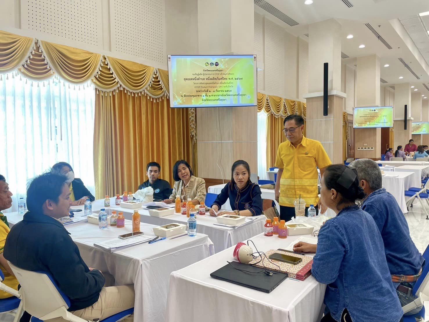 นายคเชนทร์ชัย แพงจันทร์ พัฒนาการจังหวัดพระนครศรีอยุธยา พร้อมด้วย คณะกรรมการดำเนินการคัดสรรสุดยอดหนึ่งตำบล หนึ่งผลิตภัณฑ์ไทย ปี พ.ศ. 2567 (OTOP Product Champion : OPC) จังหวัดพระนครศรีอยุธยา ดำเนินการคัดสรรสุดยอดหนึ่งตำบล หนึ่งผลิตภัณฑ์ไทย ปี พ.ศ. 2567 (OTOP Product Champion : OPC) จังหวัดพระนครศรีอยุธยา ในระหว่างวันที่ 2 -3 กันยายน 2567 เพื่อเป็นการส่งเสริมสนับสนุนให้ผลิตภัณฑ์ OTOP ได้มีโอกาสพัฒนาให้มีคุณภาพมาตรฐาน เป็นที่ยอมรับแก่บุคคลทั่วไป จนสามารถใช้เป็นแหล่งสร้างรายได้และความเข้มแข็งให้กับชุมชน อีกทั้งเป็นการกระตุ้นให้เกิดกระบวนการมีส่วนร่วมของผู้ผลิต ผู้ประกอบการ OTOP และชุมชนในการพัฒนาผลิตภัณฑ์ให้มีมาตรฐานในระดับสากล