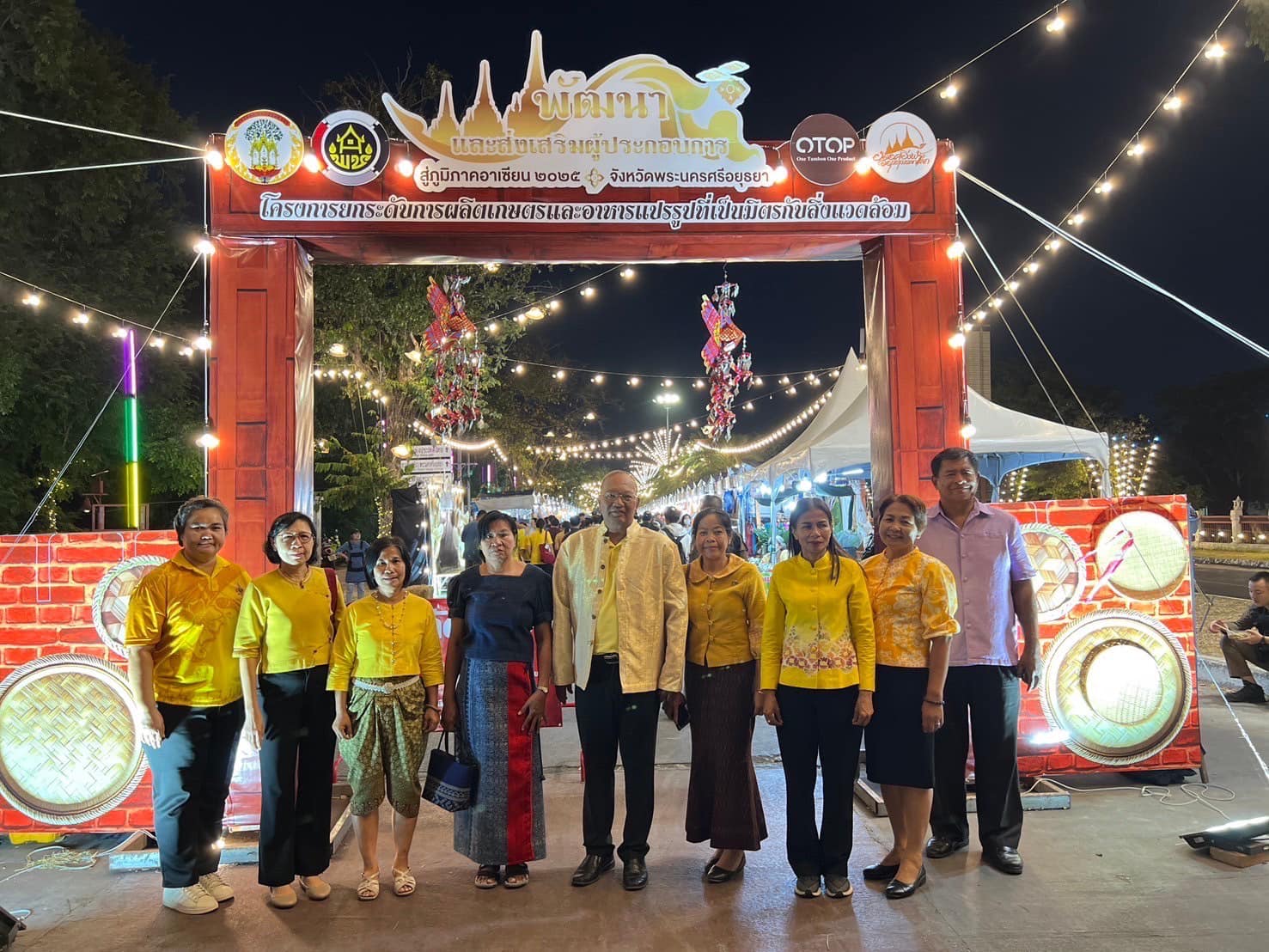 นายประจัญ จันทร์เนตร์ พัฒนาการจังหวัดพระนครศรีอยุธยา พร้อมด้วยผู้อำนวยการกลุ่มงาน เยี่ยมชมและให้กำลังใจ ผู้ผลิต ผู้ประกอบการ OTOP ภายใต้โครงการพัฒนาและส่งเสริมผู้ประกอบการสู่ภูมิภาคอาเซียนปี 2025 ภายในงานยอยศยิ่งฟ้าอยุธยามรดกโลก ประจำปี 2567 โดยจัดกิจกรรมตั้งแต่วันที่ 13-22 ธันวาคม 2567 ซึ่งมีผู้ผลิตผู้ประกอบการ OTOP เครือข่ายโคกหนองนาจังหวัดพระนครศรีอยุธยา และร้านค้าชุมชน เข้าร่วมจำหน่ายสินค้า จำนวนกว่า 140 ร้านค้า ซึ่งได้รับการตอบรับจากประชาชนเข้ามาเลือกซื้อสินค้าจำนวนมาก