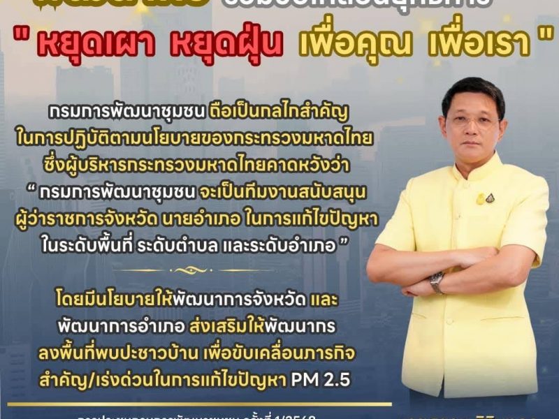 พัฒนาชุมชน ร่วมขับเคลื่อน “หยุดเผา หยุดฝุ่น เพื่อคุณ เพื่อเรา”