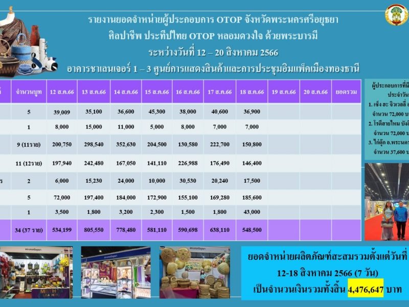 พช.อยุธยา ร่วมจัดหน่ายผลิตภัณฑ์OTOP งานศิลปาชีพ ประทีปไทย OTOP หลอมดวงใจ ด้วยพระบารมี “ผ้าทอไทย สายใยแห่งพระเมตตา สร้างอาชีพปวงประชา อย่างยั่งยืน”