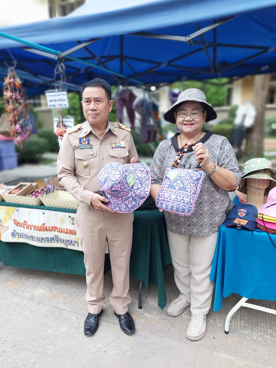 ? นายทินกร บุญเงิน พัฒนาการจังหวัดพระนครศรีอยุธยา พร้อมด้วย นางประทีป ตัณฑะตะนัย ผู้อำนวยการกลุ่มงานส่งเสริมการพัฒนาชุมชน สนับสนุนการเพิ่มช่องทางการจำหน่ายสินค้า ให้แก่ผู้ผลิตผู้ประกอบการOTOP และกลุ่มอาชีพ ที่เข้าร่วมจำหน่ายสินค้า ในตลาดนัดคนไทยยิ้มได้วันอังคาร ศาลากลางจังหวัดพระนครศรีอยุธยา